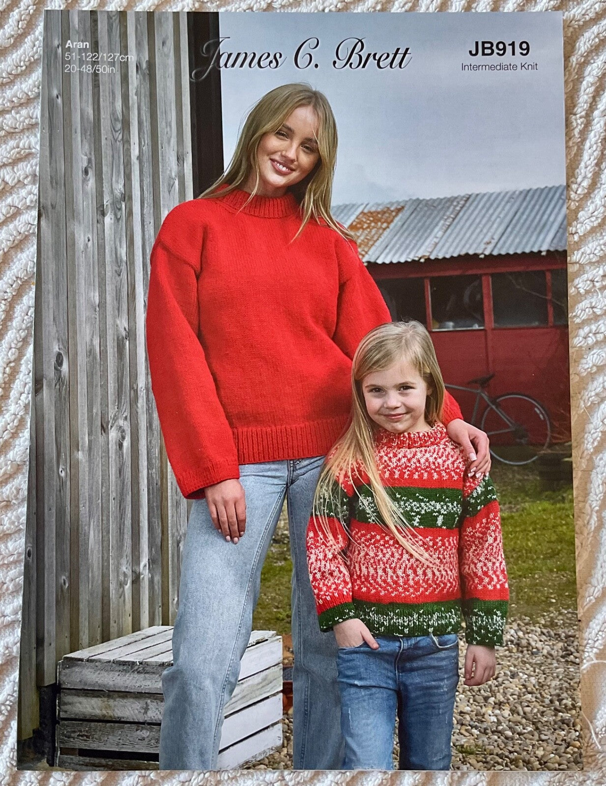 James C Brett Aran knitting pattern JB919 Child’s & Ladies Sweaters 20-50 ins