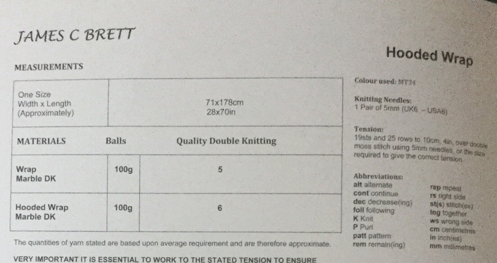 James C Brett DK Knitting pattern JB161 - Ladies Hooded Wrap