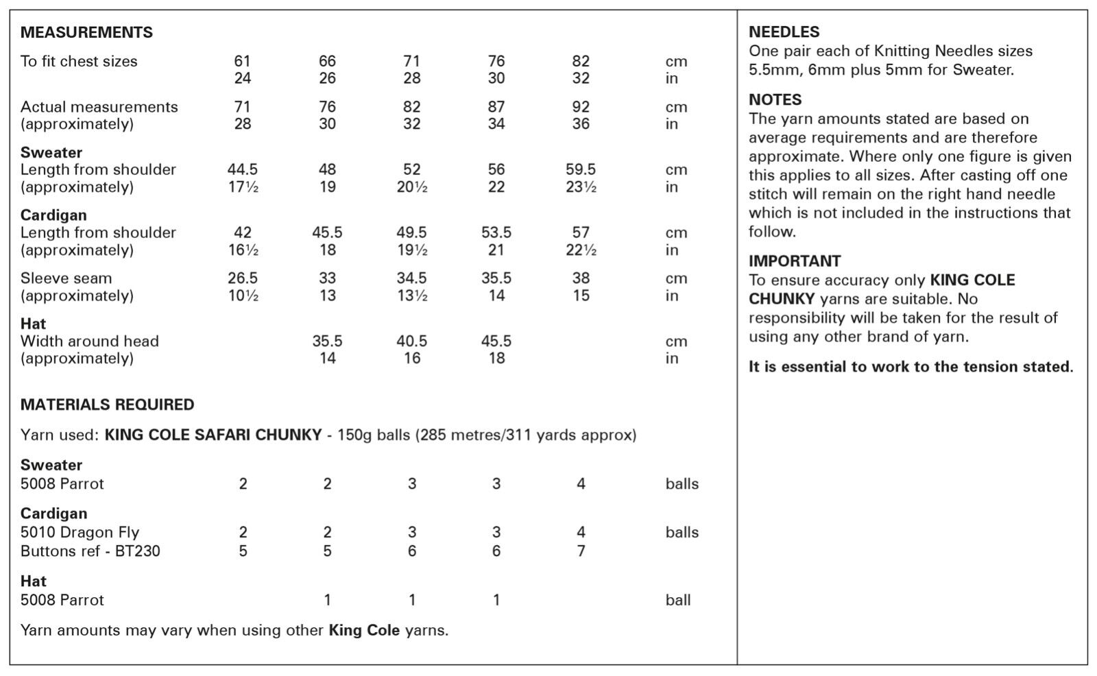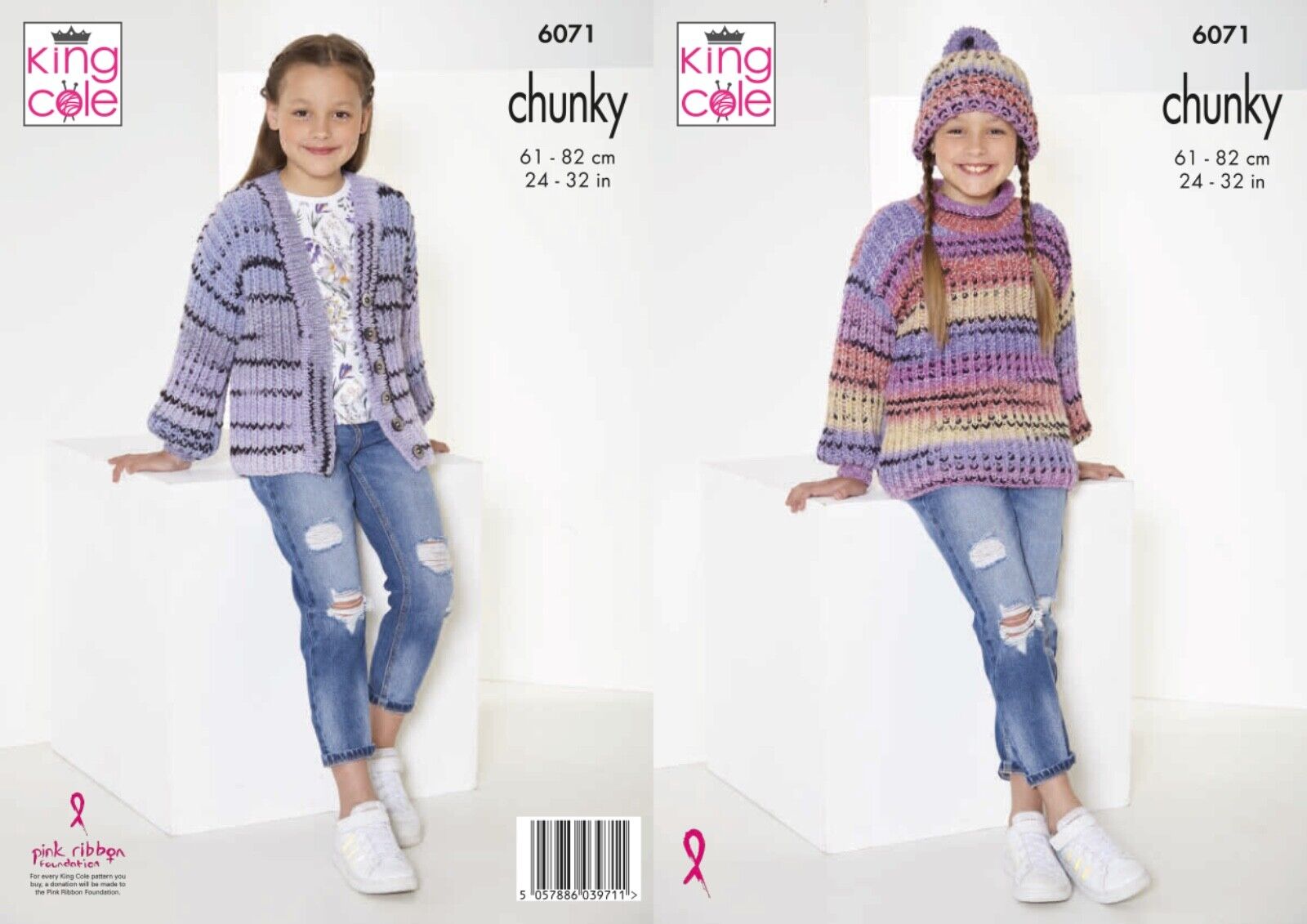 King Cole Chunky Knitting pattern 5740 Sweater & Cardigan 24-32 ins