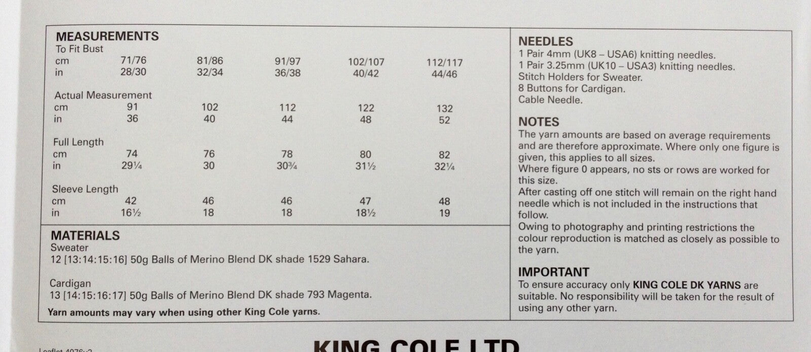 King Cole DK knitting pattern 4076 - Ladies Sweater & Cardigan - 28-46 ins #1
