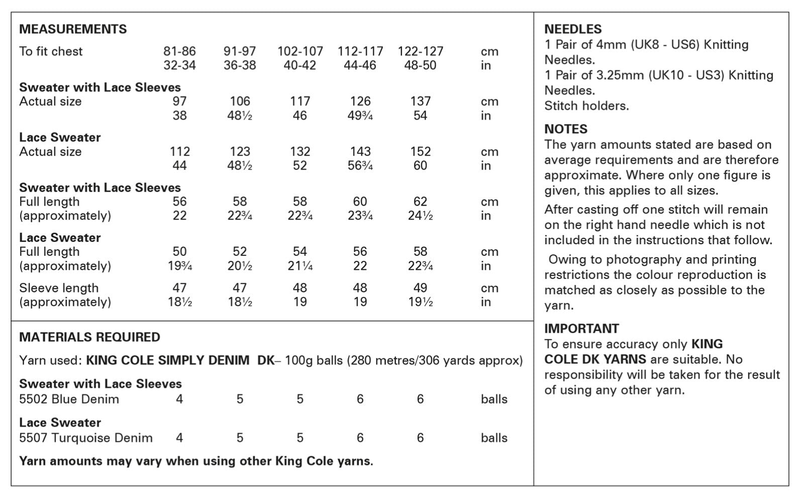 New original King Cole knitting pattern. All instructions are in english.