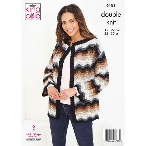 King Cole DK Knitting Pattern 6181 Sweater & Cardigan 32-50 ins